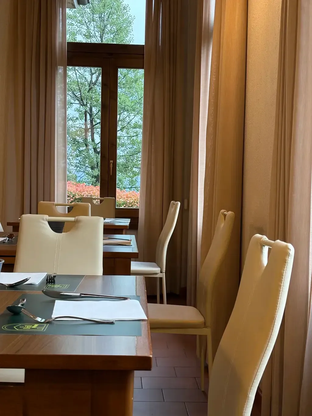 Le grandi finestre diventano cornici sospese tra cielo e montagna dove poter osservare la natura circostante. Ogni pasto è accompagnato dal profumo dei boschi e dal gioco della luce che cambia con le stagioni, rendendo l’esperienza sempre diversa.